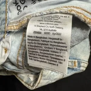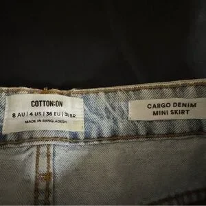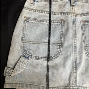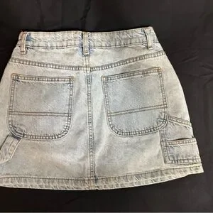Chic light blue denim mini skirt. Ideal for casual wear. Features front pockets and button closure.