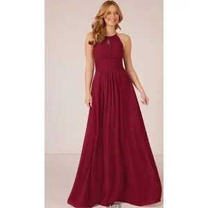 NWT Azazie Burgundy Bonnie Allure Halter Bridesmaid Dress Size 14
