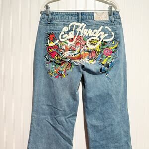 Vintage Ed Hardy Baggy Jeans Tattoo Big Print 90s Y2K Size 30