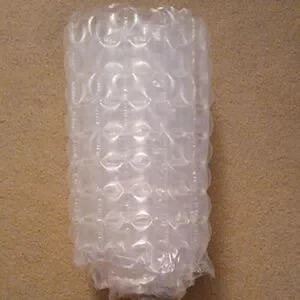 Durable clear bubble wrap for secure packaging. Ideal for protecting fragile items.