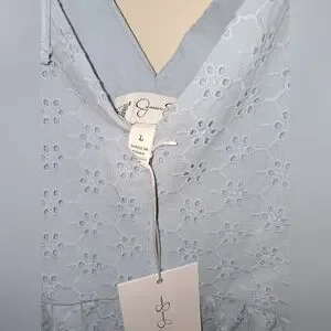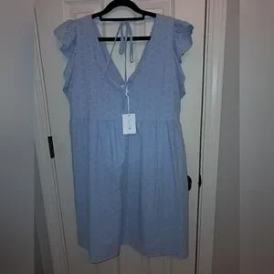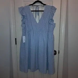 NWT Chic backless design with ruffle sleeves. Light blue hue adds elegance.