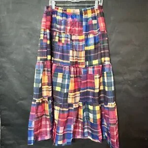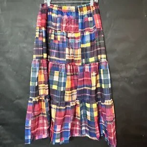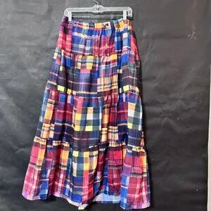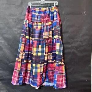 Peasant Madras Long Patchwork Tartan Plaid Skirt Buffalo Red Boho Winter Maxi