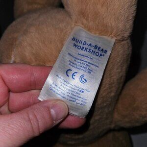Brown bunny with pink accents, can also feel plastic disk heart inside chest that was added at time of purchase.