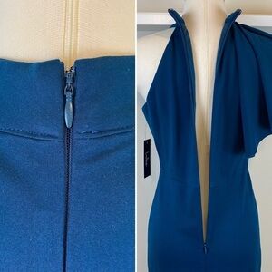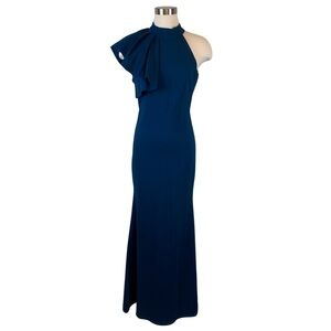 Lulus NWT Margaux Teal Blue Maxi Dress Sz M One Shoulder Ruffle Mermaid Stretch