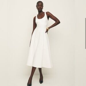 tags: midi dress, white dress, rehearsal dinner, reformation white dress, anthropology dress, anthropology bridal, bridal collection, wedding, wedding dress, bridal, bachelorette, bridal events, bridal party, graduation, engagement dress