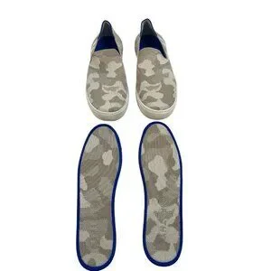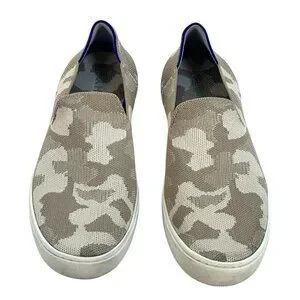 The Rothy's The Original Beige Camo Women's 9.5 Knit Fabric Slip-On Sneaker is a stylish and comfortable option for women looking for a casual shoe. Featuring a round toe shape, slip-on closure, and flat heel, these sneakers are perfect for travel or everyday wear. The knit fabric upper and foam insole provide comfort and support, while the rubber outsole ensures durability. With a camouflage pattern and designer theme, these sneakers are a versatile choice for any season. Perfect for walking, school, or running errands, these slip-on sneakers from Rothy's offer both style and practicality. in really nice clean condition the wear is minimal