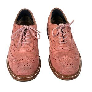 The Fossil Batey Boyfriend Women loafer Shoes in size 6.5 are stylish and comfortable flat shoes made from pink suede. Featuring an almond toe shape, lace-up closure, and well-cushioned insole, these loafers are perfect for casual occasions in the summer, fall, or spring seasons. With a fabric lining and logo accents, these shoes are designed for women who want to add a touch of vintage-inspired flair to their outfit while still maintaining a trendy look. Made by the reputable brand Fossil, these loafers are a versatile and chic addition to any wardrobe. condition is good the wear is minimal