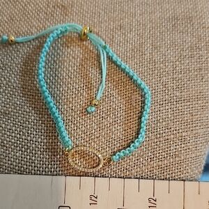 Gold and Mint Braided Adjustable Bracelet. Hand Crafted