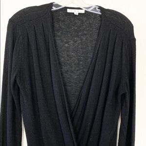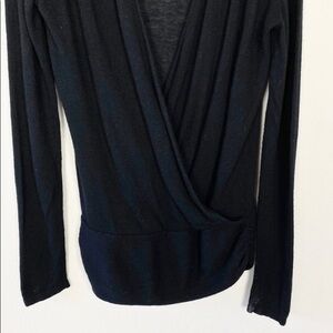 Light Weight Sweater Top Cross V neck . Ruches sides . Long Sleeves . Wool Blend . Blackest