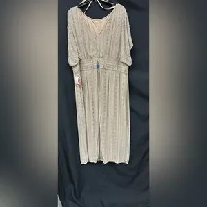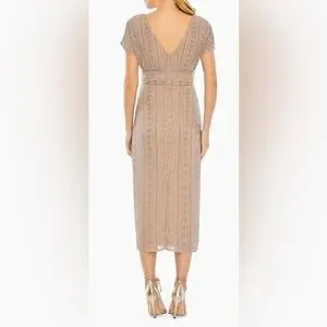 *Flawed Mac Duggal 93649 NWT Beige Embellished Midi Dress