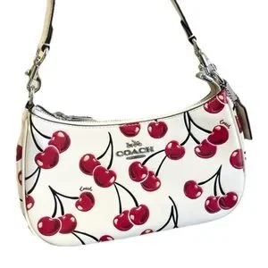 🍒COACH Cherry Print Teri Shoulder Bag in Silver Chalk Multi MSRP $398🍒