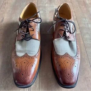 Stacy Adams Harrison Spectator Shoe Cognac Multi Buffalo Leather Size 10.5
