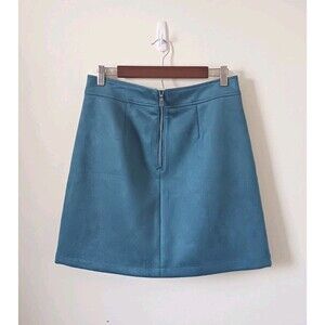 Ann Taylor Loft Womens A Line Faux Suede Teal Blue Mini Skirt Lined Front Pocket Size 6