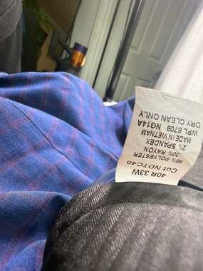 Tommy Hilfiger Men's Performance Dress Pants. Features a modern fit with a blue plaid pattern. Size 33W x 40R (unhemmed/long length).
