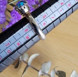 Aurora Borealis 3 Prong Vintage Ring with Iridescent Blue Stones. Size 5 1/2.