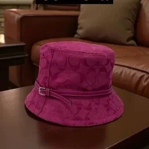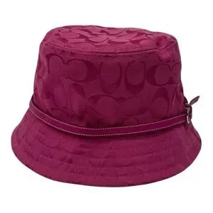 Add a pop of color with this Coach bucket hat. Fuchsia exterior with a stylish belt detail. Bright orange interior for a fun contrast. Vintage Coach y2k Bucket hat in monochrome magenta with signature monogram size S Any minor imperfections are shown in my pictures and video