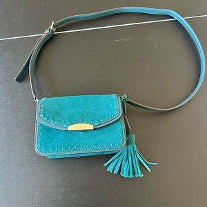 Kate Spade crossbody purse in Teal with tassel and detailing.