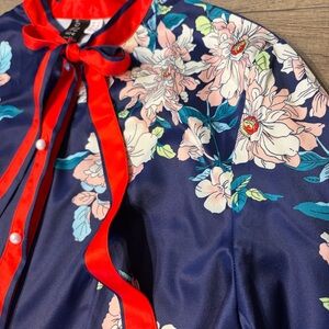 Retro Floral Midi Dress in Navy and Red