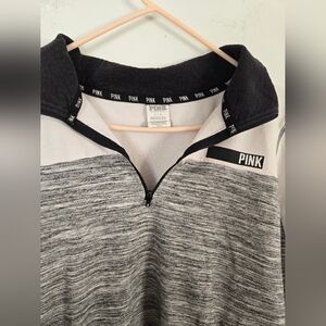 PINK VICTORIAS SECRET Women's Large 1/4 ZIP Gray Pullover Sweatshirt