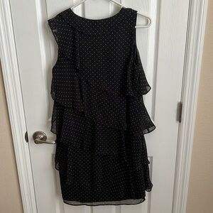 Jessica Howard Polka Dot Ruffle Dress Sleeveless Party Cocktail Black Size 8