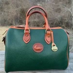 Vintage Dooney & Bourke Boston Green and Tan Leather Handbag