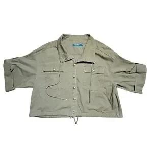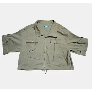 Lauren Ralph Lauren Womens 16 Vondra Cropped Utility Jacket Olive Twill Safari