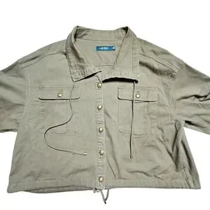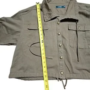 Lauren Ralph Lauren Womens 16 Vondra Cropped Utility Jacket Olive Twill Safari.