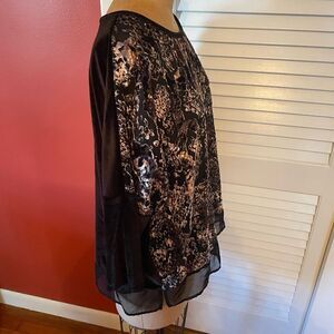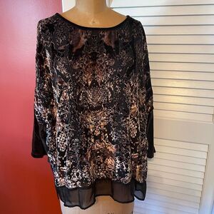 CHICO’S | crushed velvet 3/4 sleeve pullover top black pattern sheer bottom 3