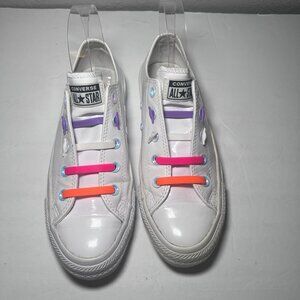In good condition. Converse Chuck Taylor All Star Women 6 White Low Top Sneakers Colorful Laces