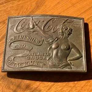 This Coca-Cola belt buckle has an interesting and almost scandalous backstory, which can be found at https://www.beltbucklehistory.com/post/tiffany-belt-buckles-the-complete-story