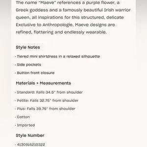 Elegant ivory shirtdress with a tiered design & blue detailing. Features side pockets and button front closure. Relaxed silhouette for versatile styling.