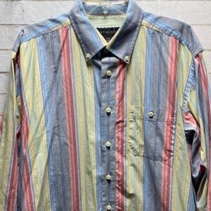 Cotton Reel Men’s Large Multicolor Stripe Long Sleeve Button Up Shirt Easter
