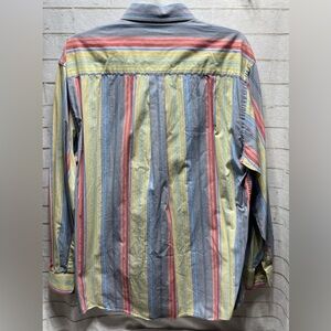 For sale is this Cotton Reel Men’s Large Multicolor Stripe Long Sleeve Button Up Shirt. Excellent used condition, no holes or stains.
