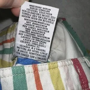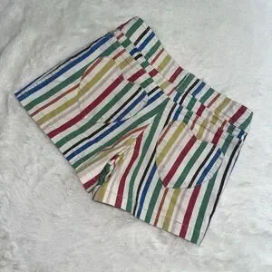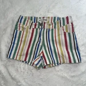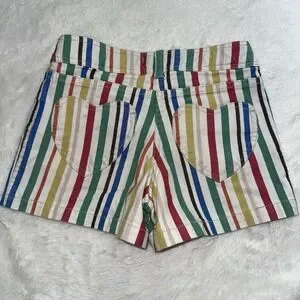Mini Boden Rainbow Striped Denim Shorts Girls 8 Heart Pockets Colorful Preppy