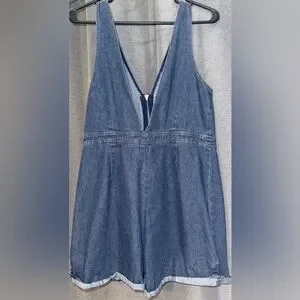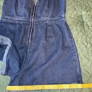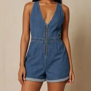 Chic and stylish denim sleeveless jumpsuit perfect for any casual outing. Features a flattering fit with a front zipper for easy wear. Ideal for a trendy, laid-back look.