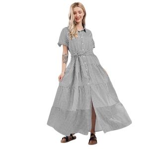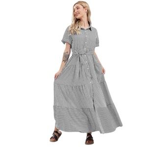 UTCOCO NWT Black Striped Maxi Dress with Belt Size Medium—ordered wrong size