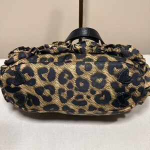 • Design: Chic leopard animal print on durable nylon with black leather trim.