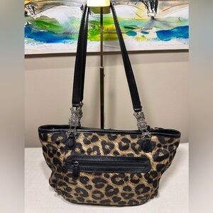 Brighton Jill Boutique Leopard Print Rosette Shoulder Bag with Leather Trim