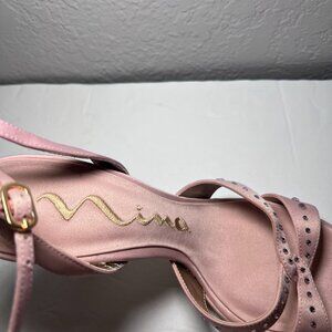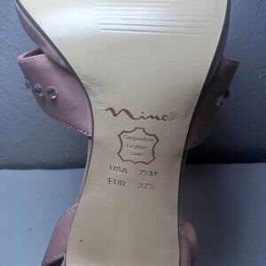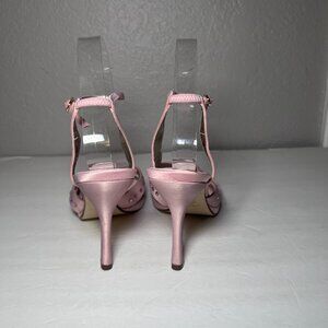 In good condition. Nina Women 7.5 Pink Pearl Rose Satin High Heels Strappy Rhinestone Embellished