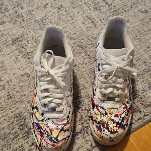 The paint splatter design is a popular customization for Nike Air Force 1 shoes