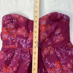 Keywords: Free People dress, strapless mini dress, floral dress, maroon dress, orange floral dress, smocked back dress, bow tie dress, party dress, casual dress, summer dress, boho dress, Free People floral, Free People maroon dress, size M dress
