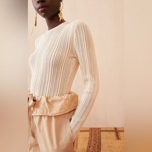 Ulla Johnson Lyana Pullover Cream Ivory Textured Rib Knit Sweater Top Size Large