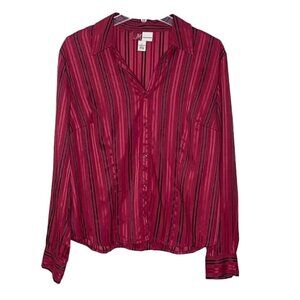 ❤️ JM COLLECTION Button Down Striped Blouse Size L