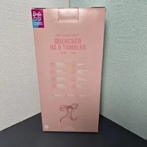 Stay hydrated in style with this pink and peach Barbie x Stanley Quencher H2.0 Tumbler. The set includes a tumbler and straw, perfect for enjoying your favorite beverages on the go. The vibrant design adds a fun touch to your daily routine. Whether you're at home or on the move, this drinkware set is a must-have for any Barbie fan.