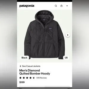Patagonia Men’s Diamond Quilted Bomber Hoody NWOT