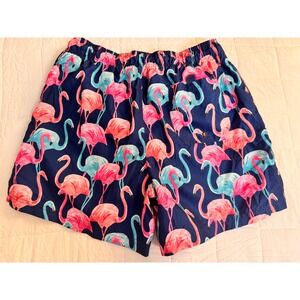 Men's Flamingo Print Swim Trunks Shorts Size Large Elastic Waist