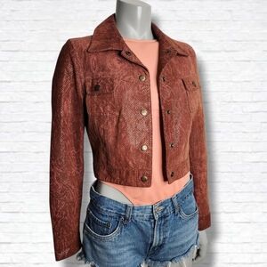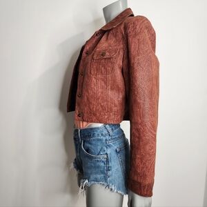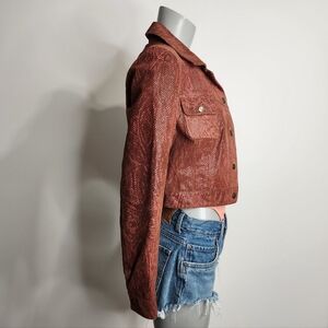 Vintage DINO'Z Metallic Reptile Print Leather Cropped Jacket Size XS