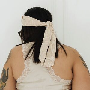 Designed to be worn multiple ways, this versatile hair scarf can be styled as a headband, tied in a bow, or wrapped around a ponytail or bun for an elevated, vintage-inspired finish. The lightweight fabric makes it comfortable for all-day wear, whether you’re dressing up a casual outfit or accessorizing for a special occasion.
