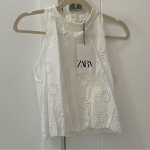 Zara White Embroidered Top- Size S; New with Tags