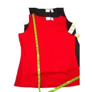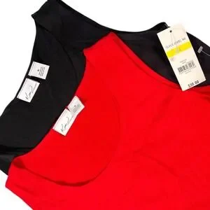 Kim Rogers M Red Black Tank Top 2 Pack Jewel Neck Sleeveless Shell Minimalist
